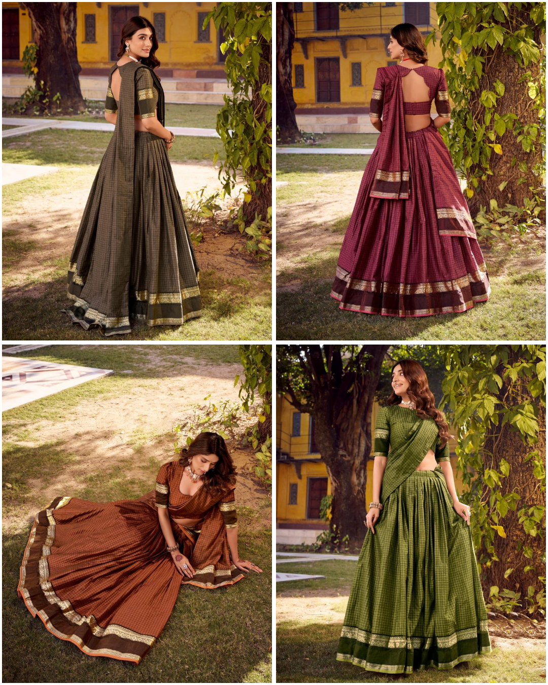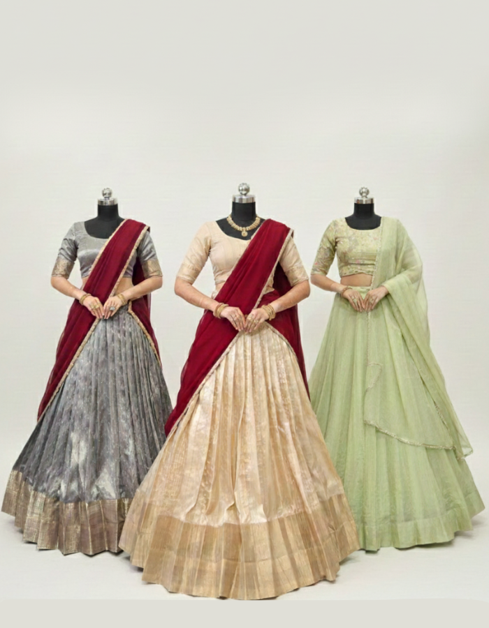 Swasthika Collection: Chettinad Cotton Zari Woven Lehenga Choli with Chex Pattern